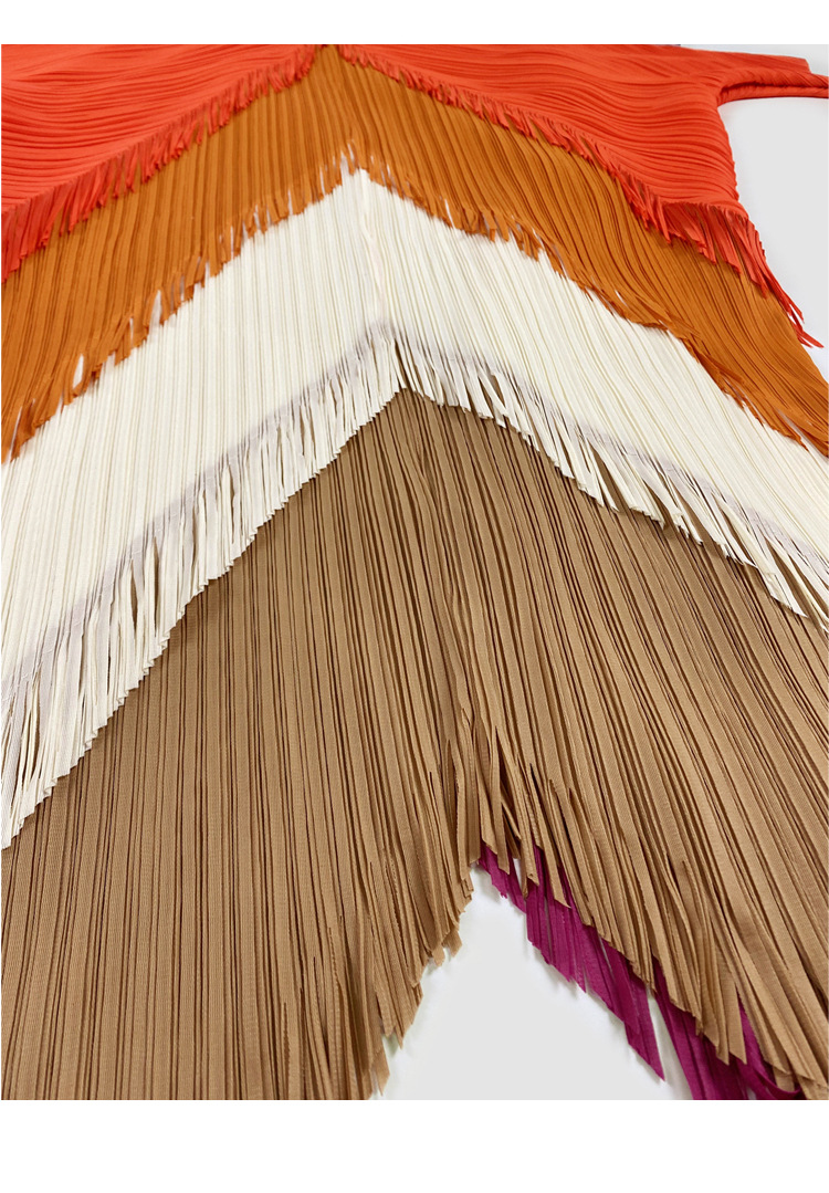 Spring And Summer New Wrinkled Tassel Skirt Minority Color Contrast Splicing Jumpsuit